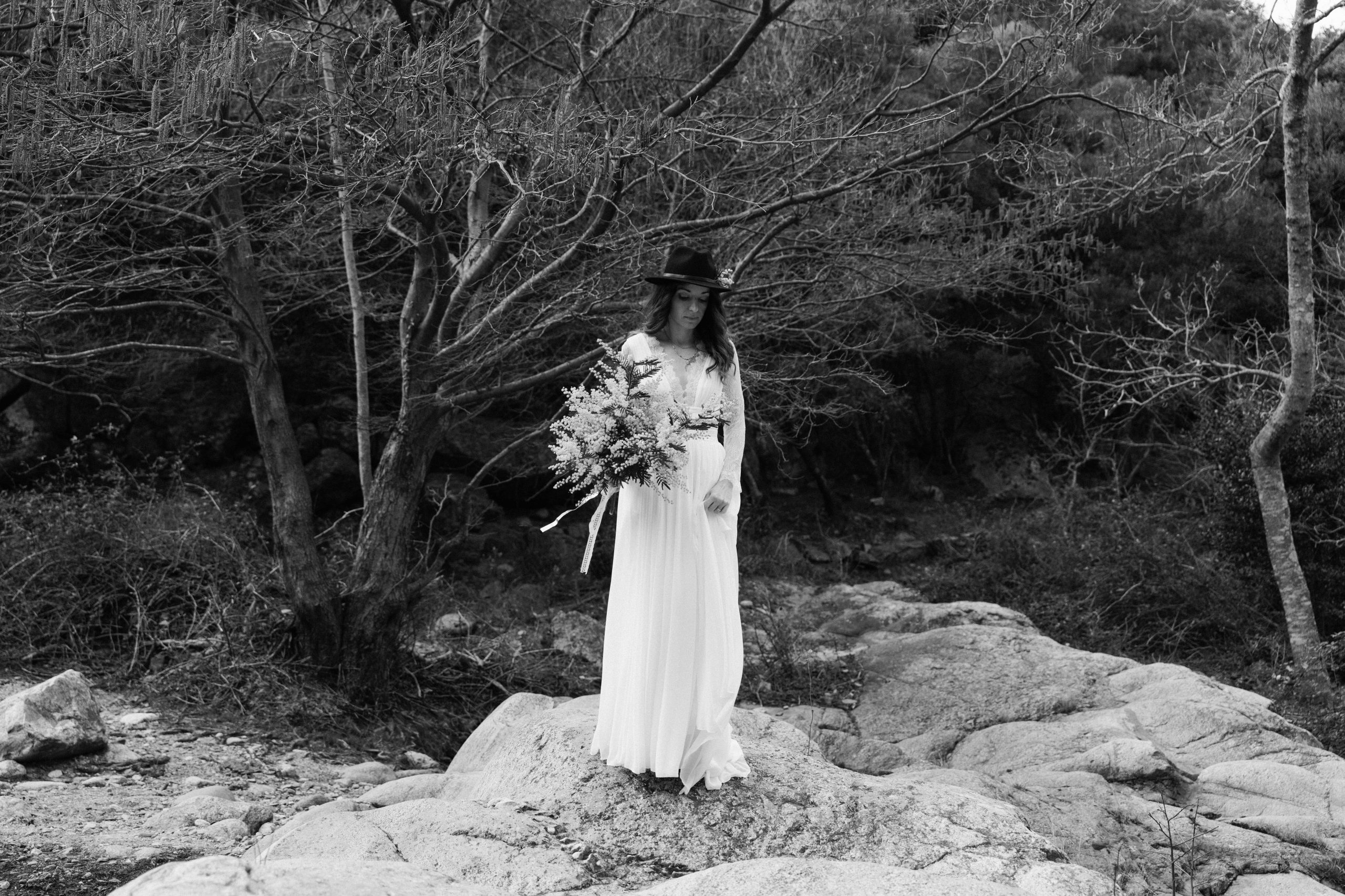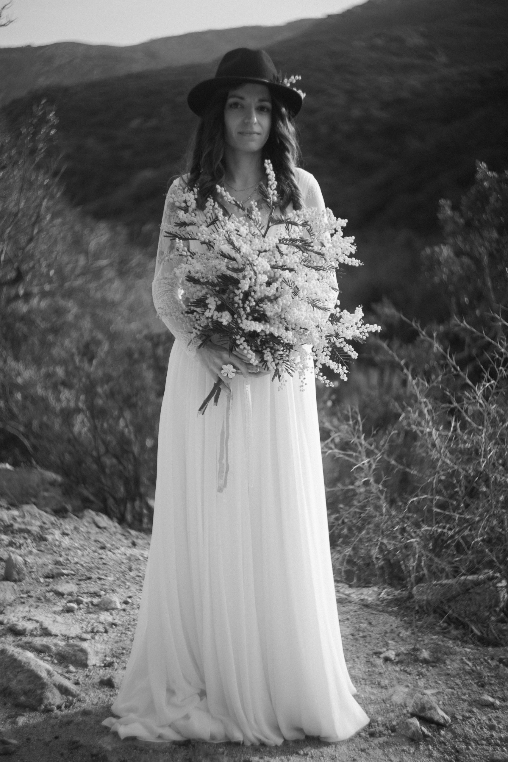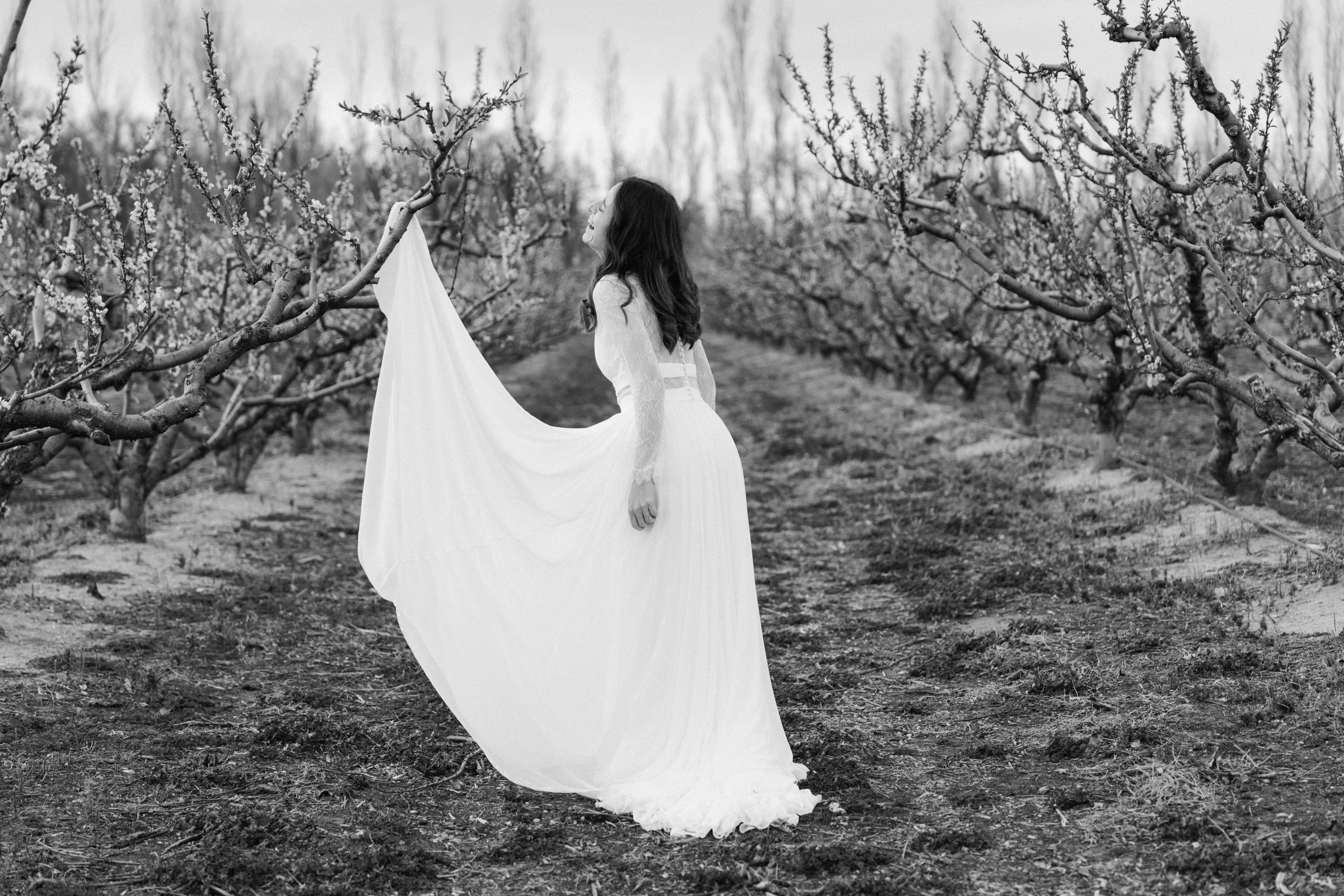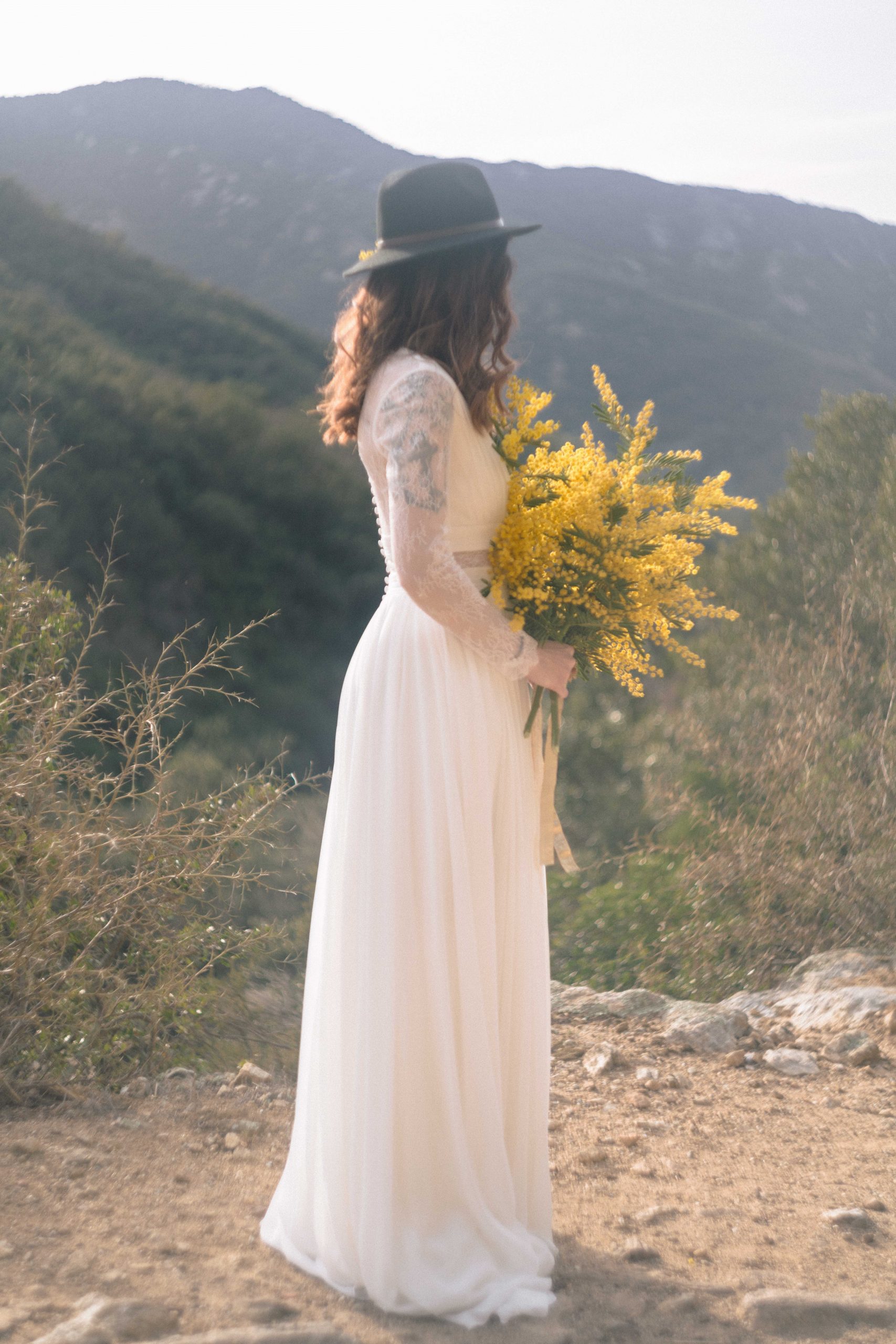 En fin d’après-midi, Nelly, sublime en robe de mariée, s’est laissée envelopper par la magie de la forêt de Lavail. Sous les derniers rayons du soleil, chaque fleur de pêcher à Palau-del-Vidre a doucement célébré son passage.