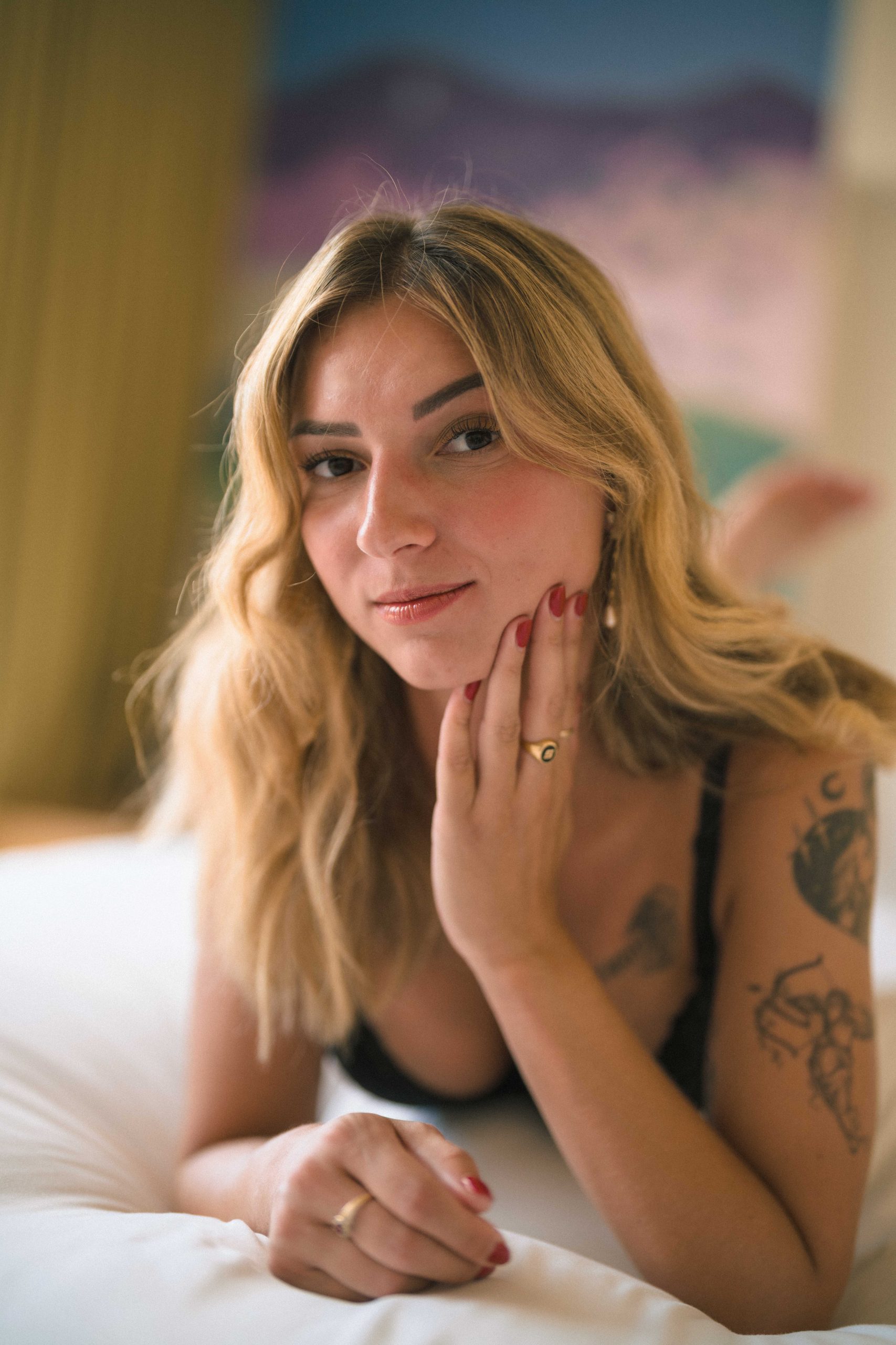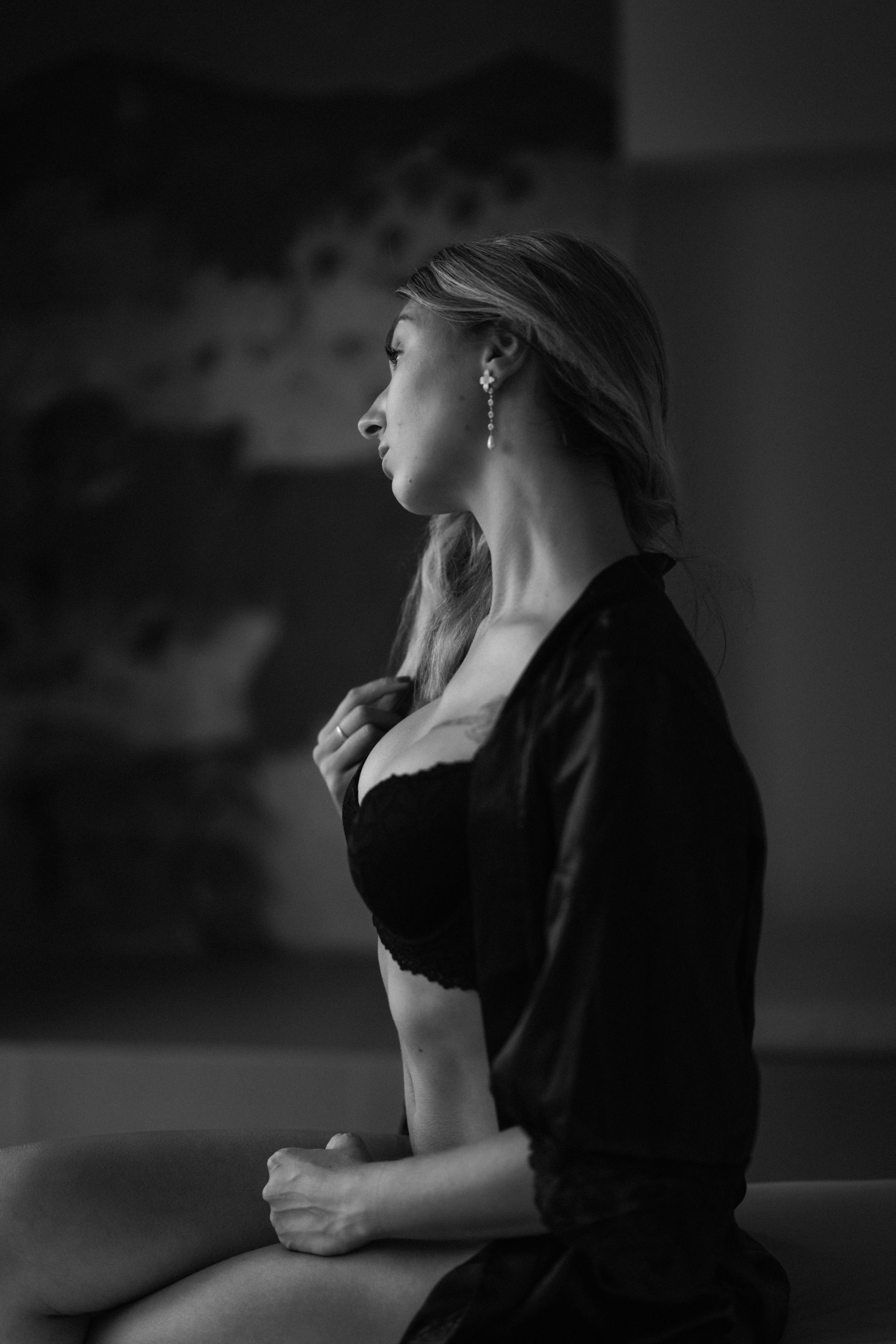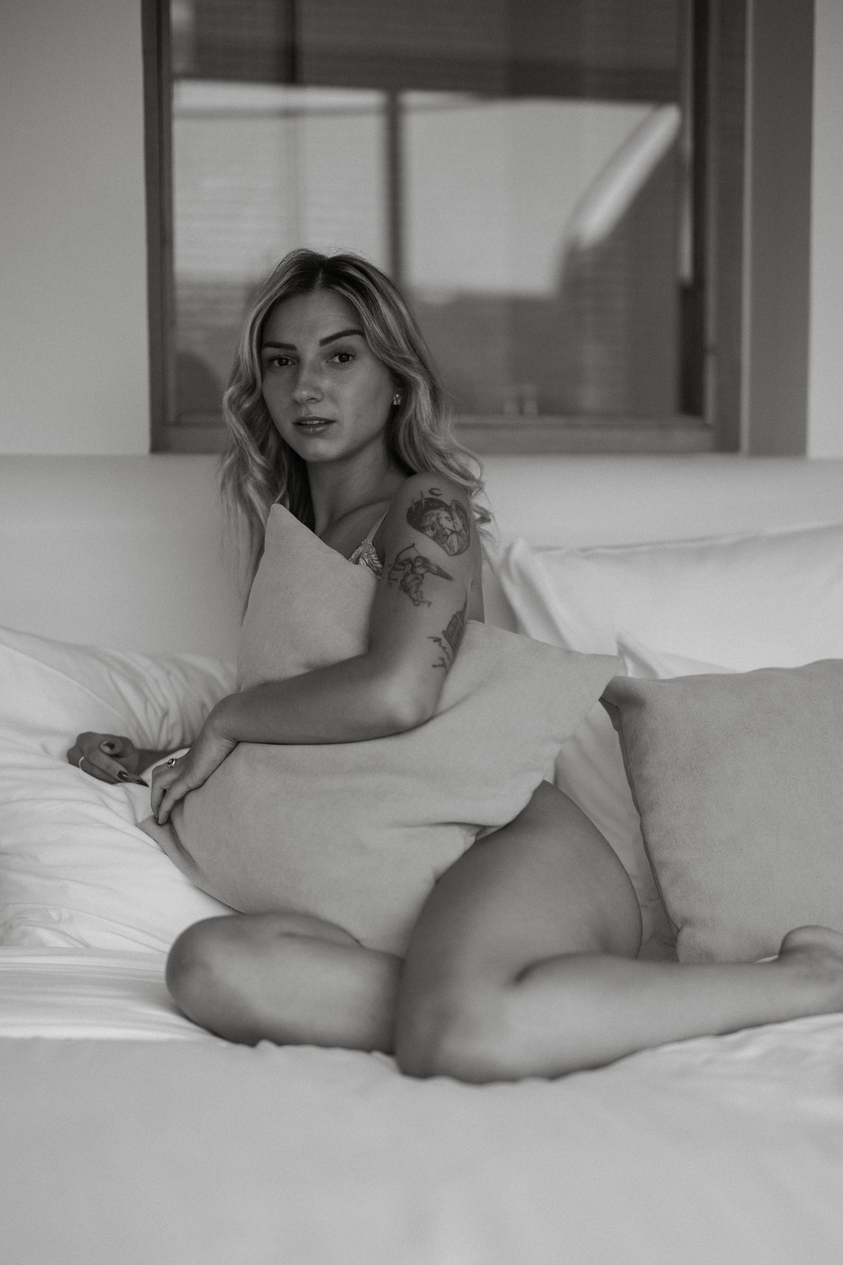 Dans l’intimité feutrée d’une chambre baignée par une lumière douce, j’ai eu le privilège de capturer la beauté délicate de Romane pendant un instant boudoir.