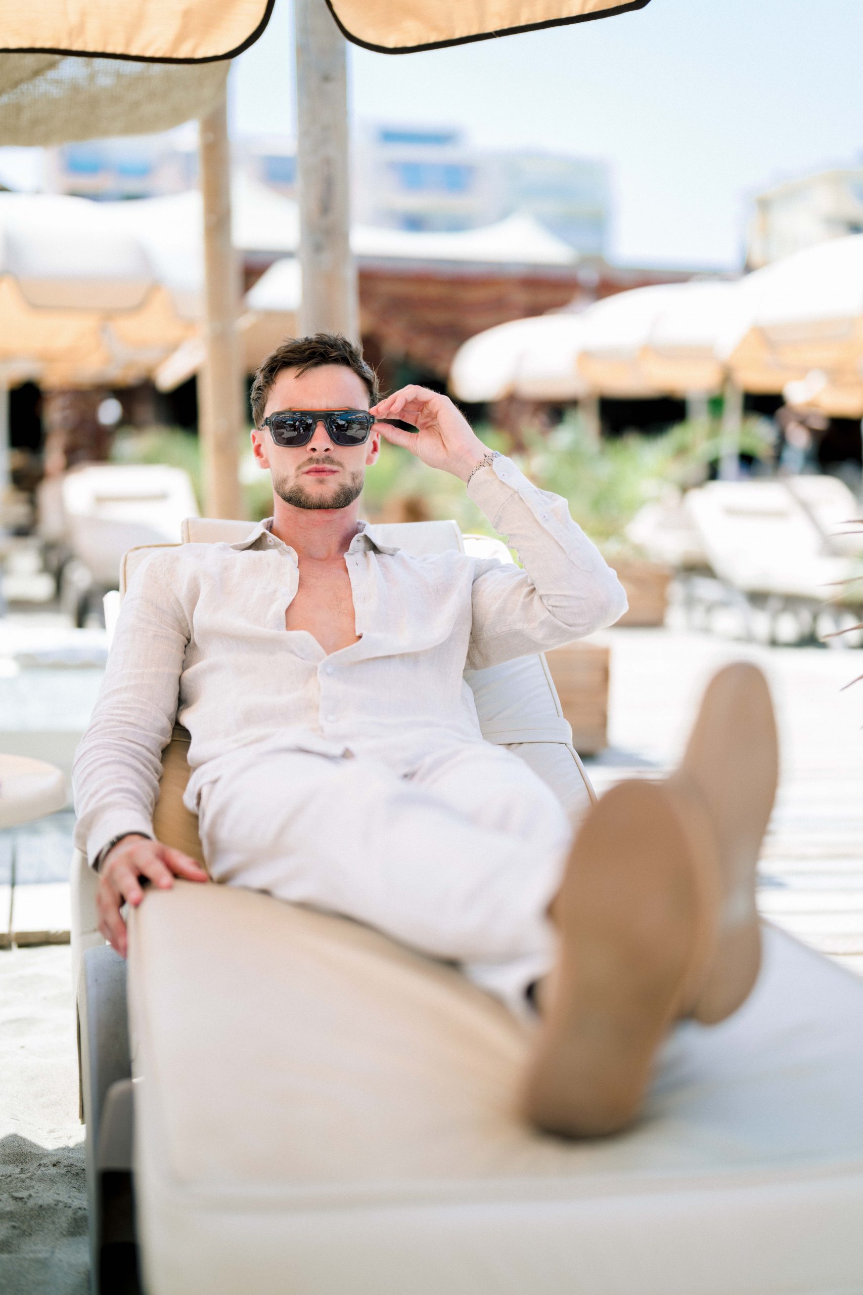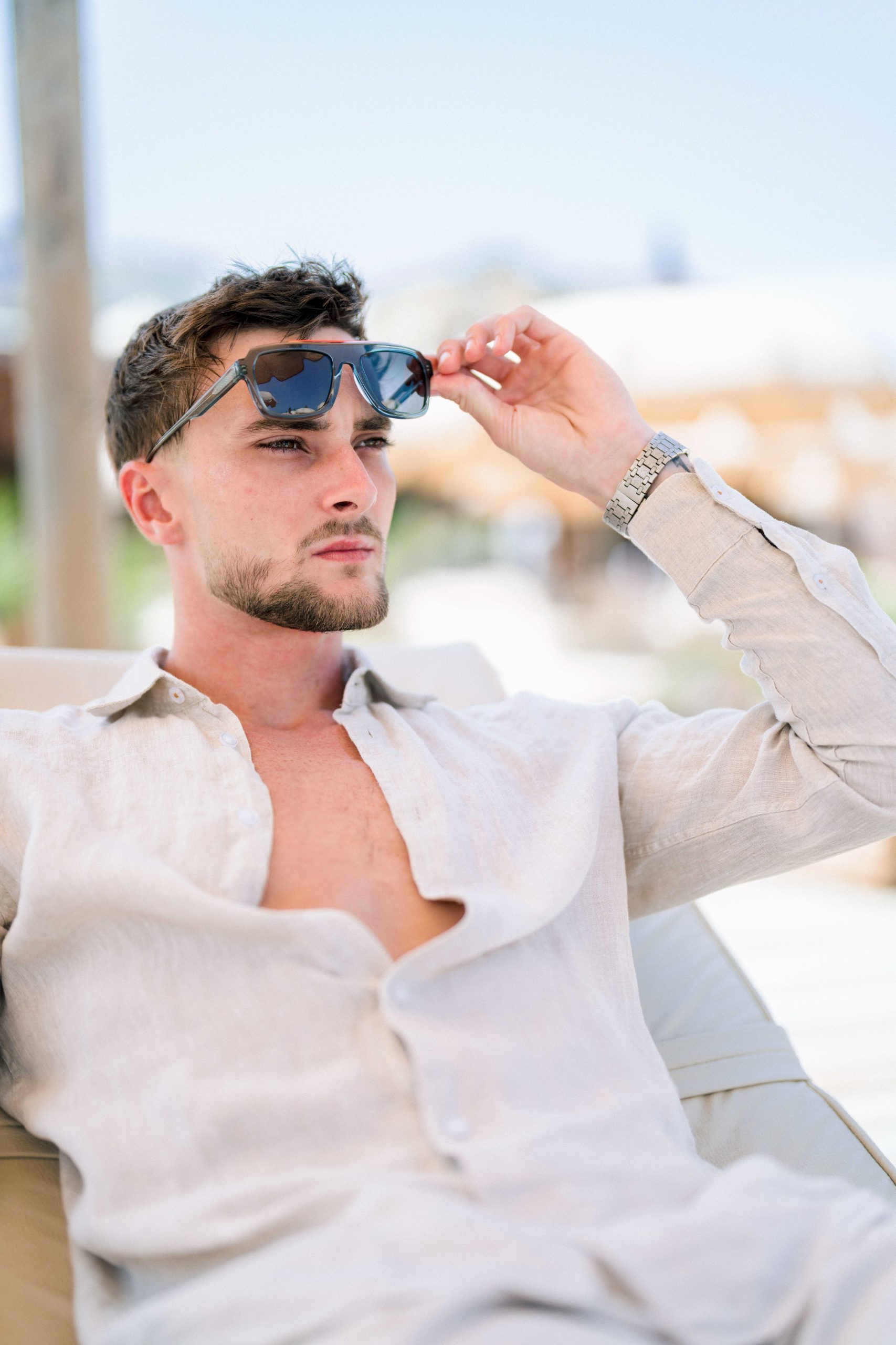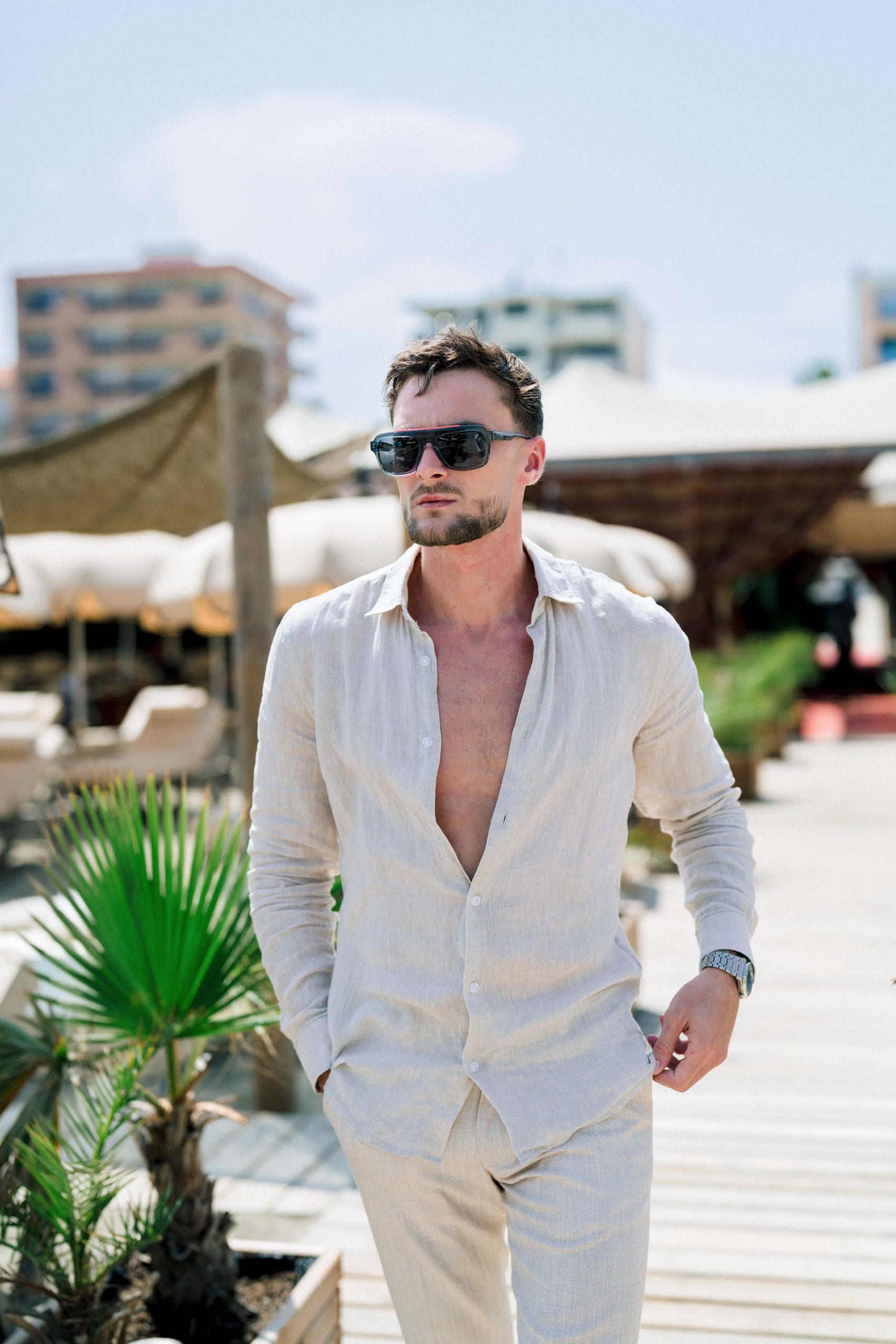 Sous le soleil de Canet-en-Roussillon, au Panama Beach Club, Luigi incarne l’élégance décontractée. Vêtu des pièces raffinées de la boutique Devred Perpignan Auchan et des lunettes Xavier Garcia, il évolue entre sable et mer, porté par une lumière d’été éclatante.