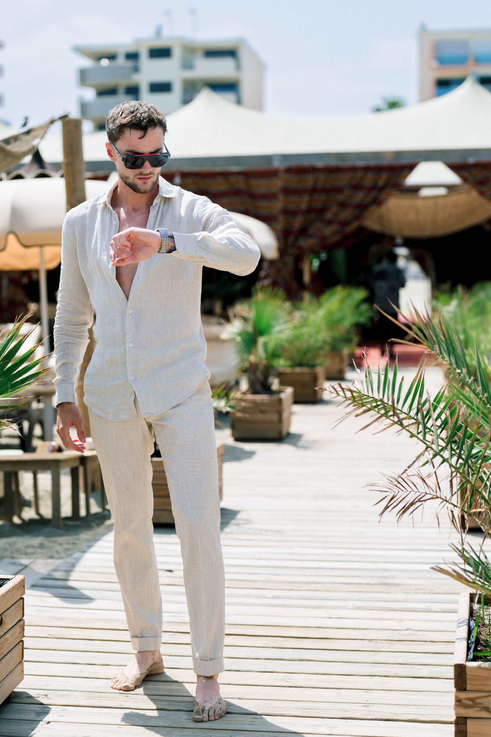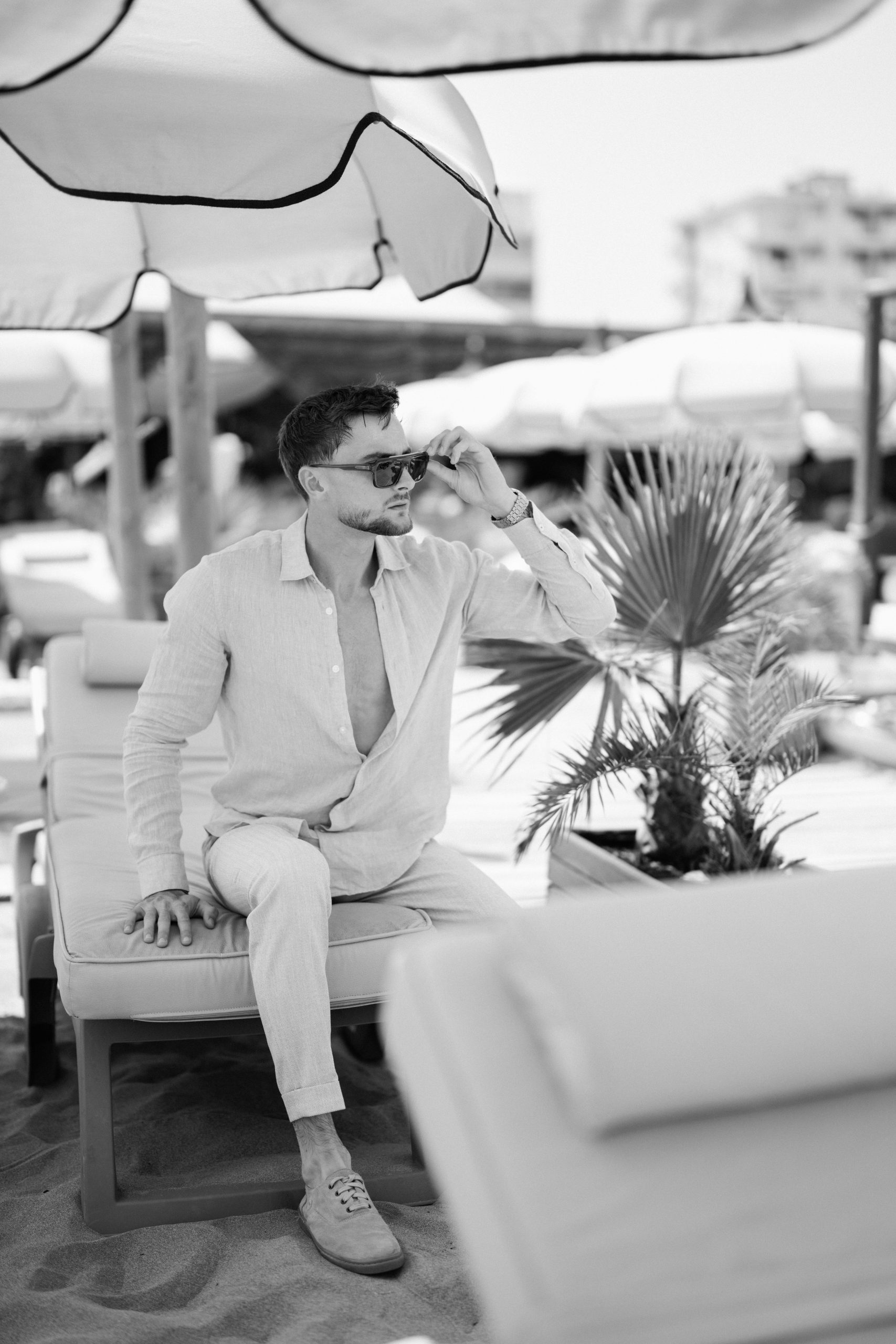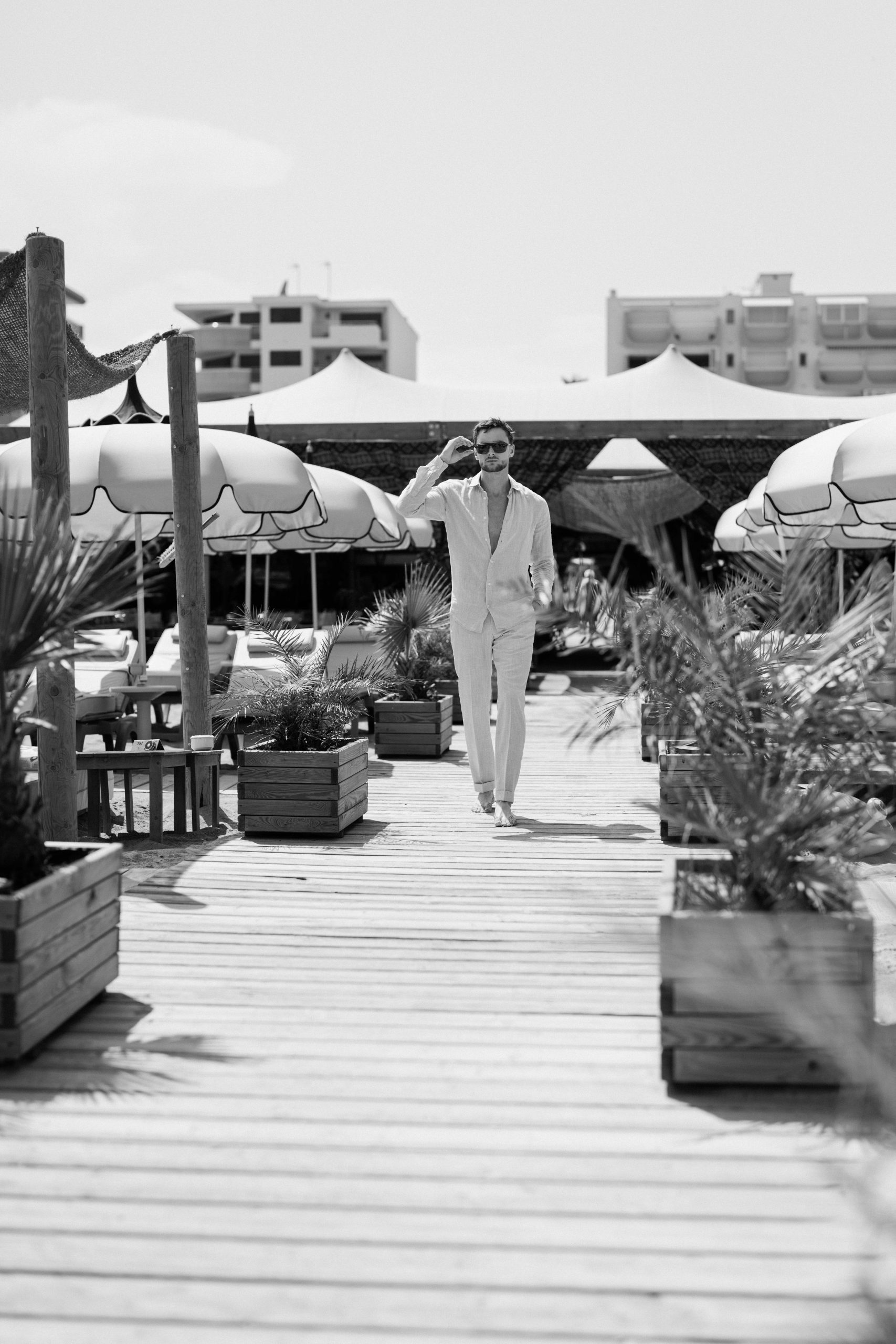 Sous le soleil de Canet-en-Roussillon, au Panama Beach Club, Luigi incarne l’élégance décontractée. Vêtu des pièces raffinées de la boutique Devred Perpignan Auchan et des lunettes Xavier Garcia, il évolue entre sable et mer, porté par une lumière d’été éclatante.