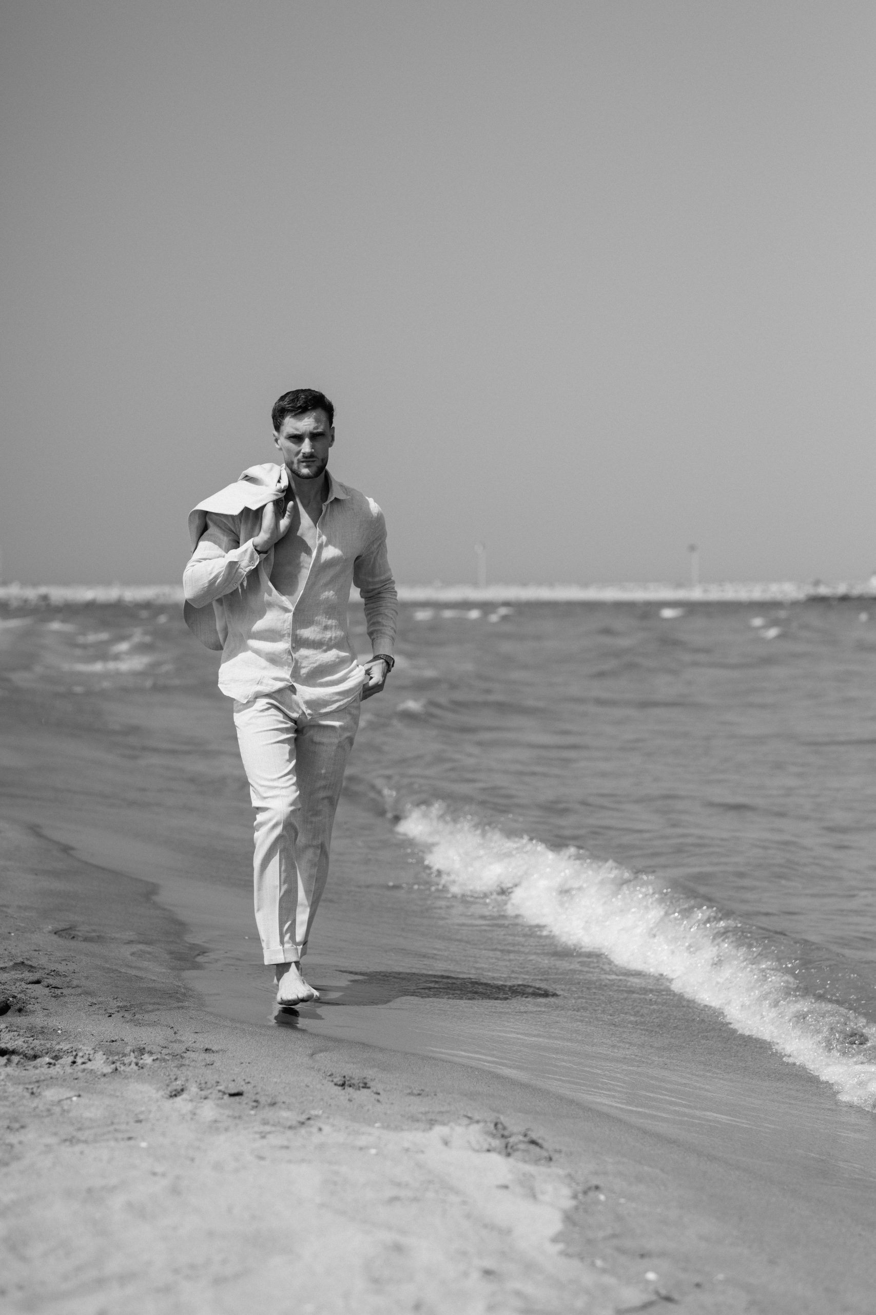 Un instant suspendu où la mode se mêle à l’horizon.