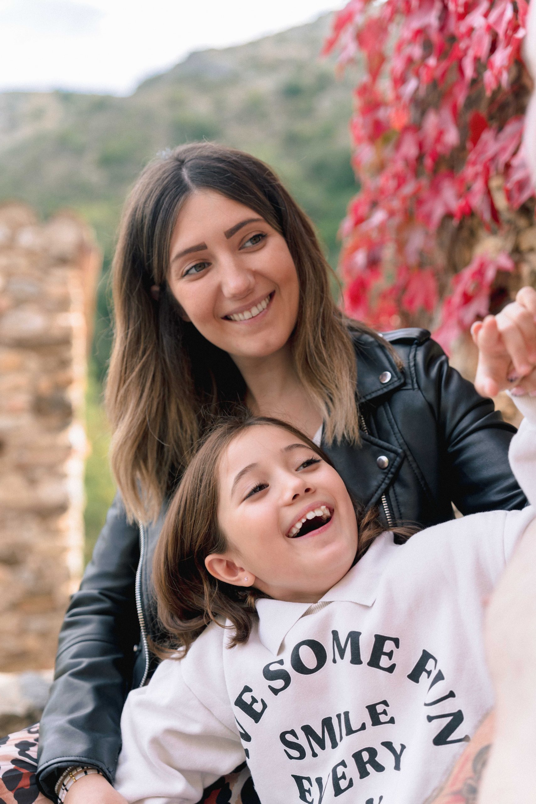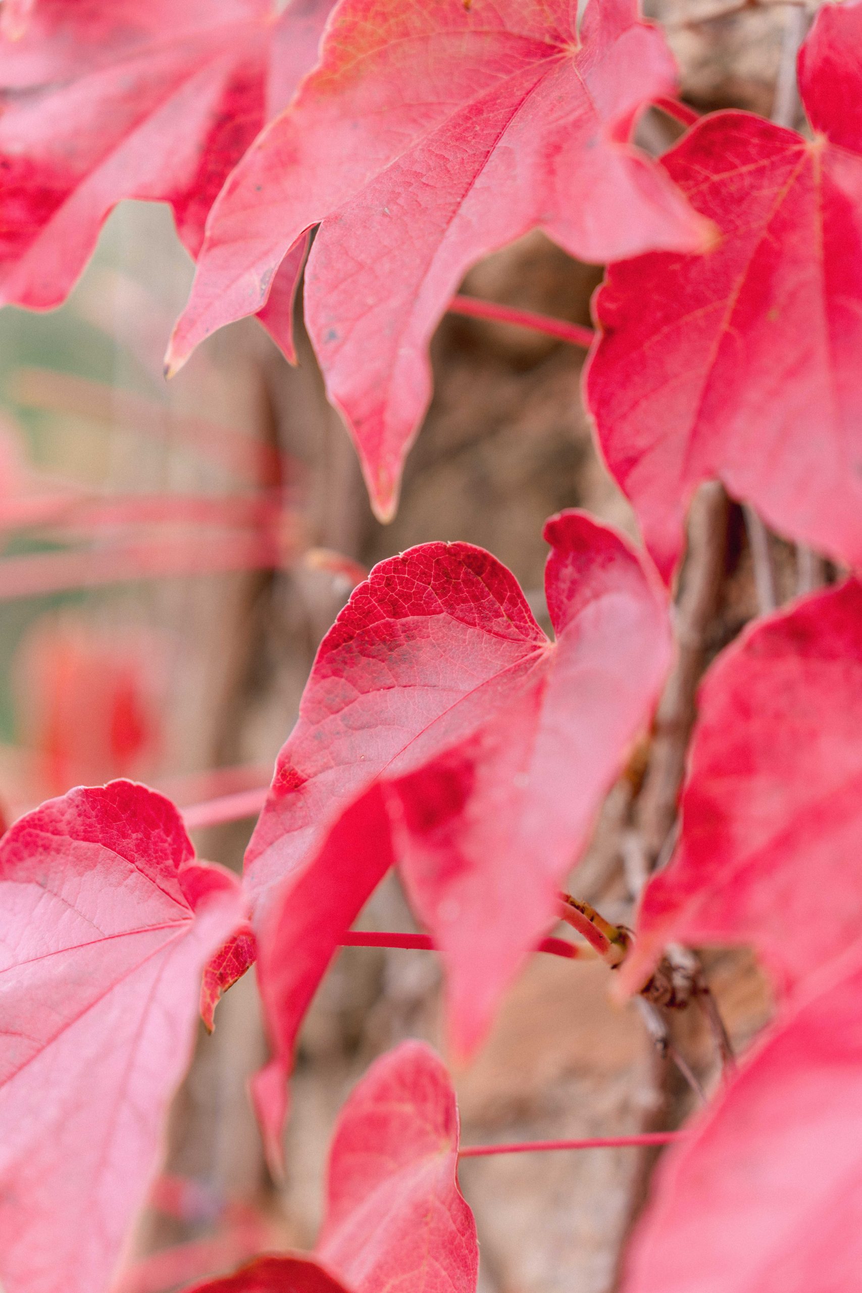 Mur de feuilles rouges vibrantes, un détail coloré du paysage de Castelnou (66), ajoutant une touche de chaleur à la séance photo de grossesse de Marie-Ève et Philippe.